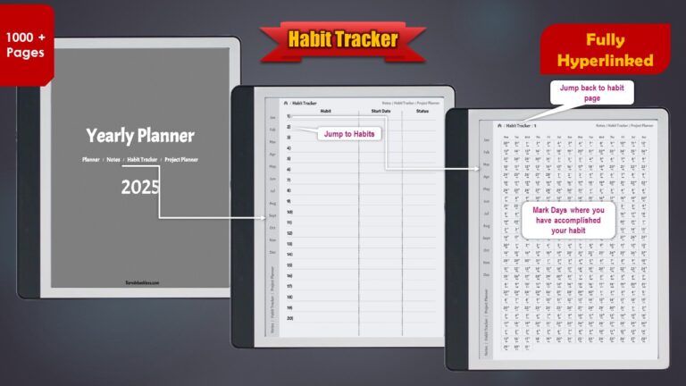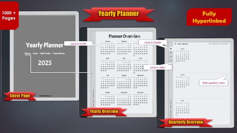 Stay productive and organized with the Yearly Planner for Kindle Scribe. This all-in-one hyperlinked PDF planner is designed specifically for Kindle Scribe users who want a clean, distraction-free way to manage their life digitally.